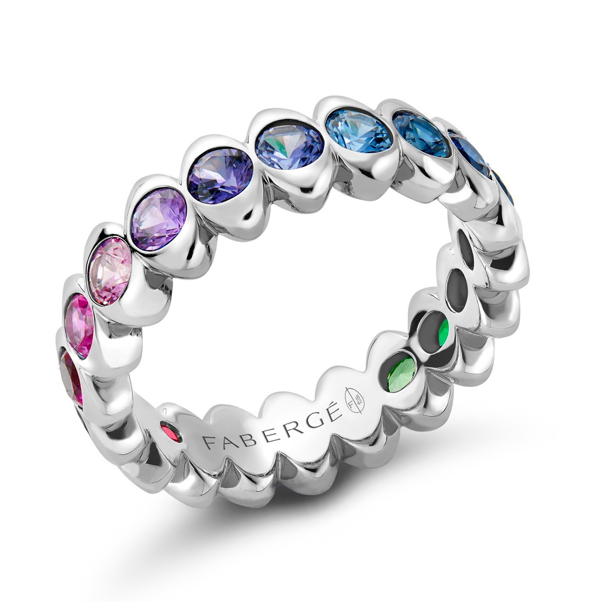 The Treillage Collection is inspired by the Diamond Trellis Egg, created by Fabergé in 1892. The evocative designs, with their soft, tactile and gem-set quilting, represents the perfect marriage of heritage and modernity. The ring is 6.7mm in width.